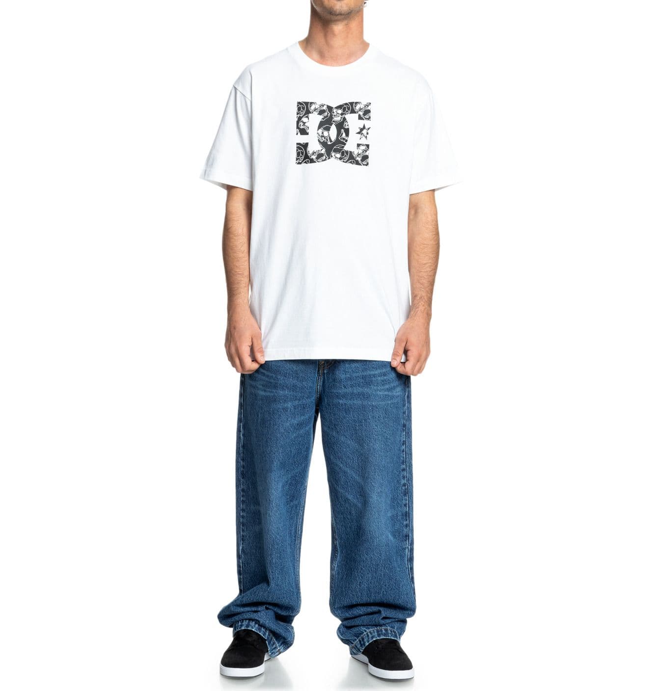 DC SHOES MENS T SHIRT.STAR SKULLY BACKPRINT WHITE COTTON SHORT SLEEVED TOP S25