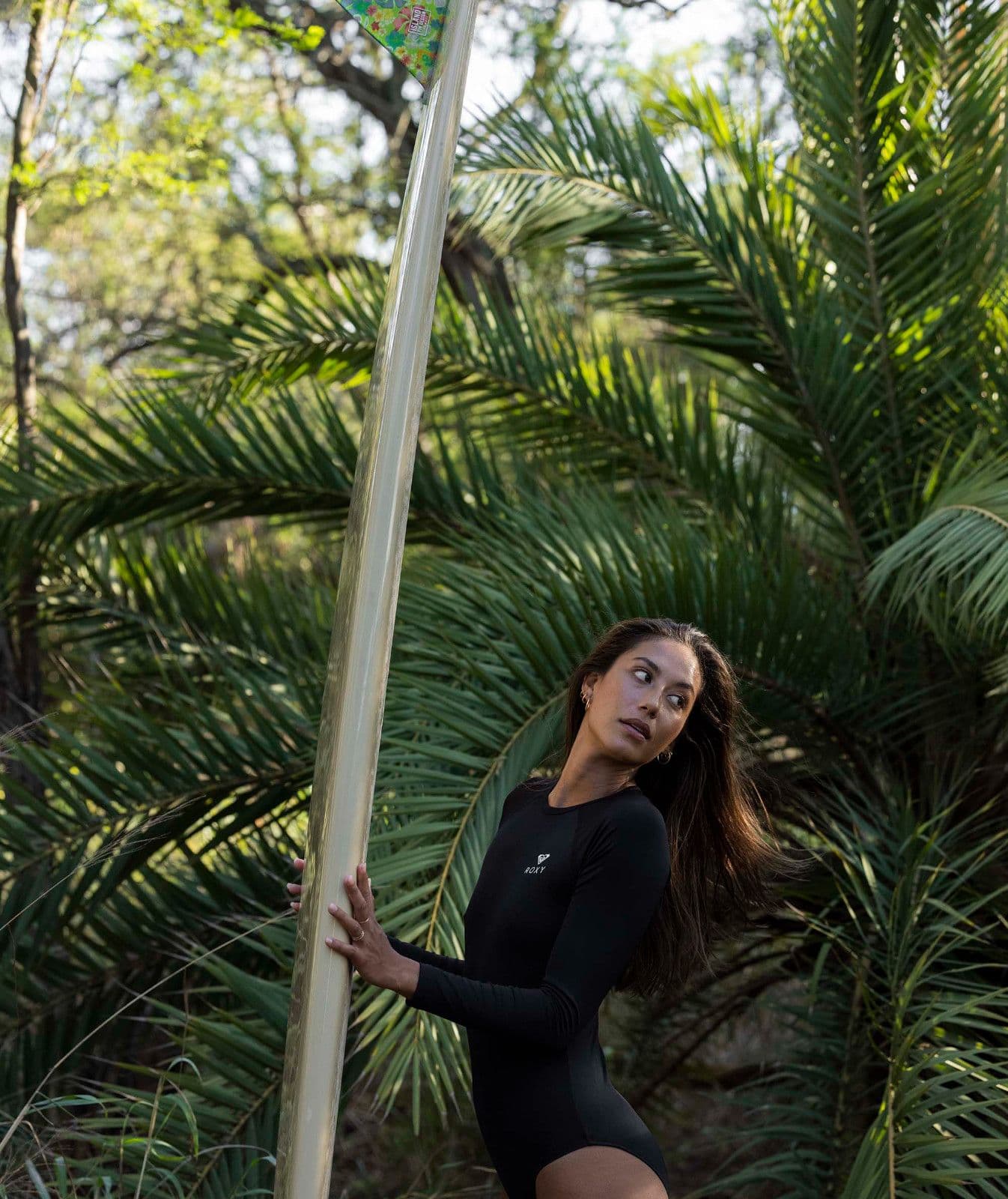 ROXY WOMENS RASH BODY SUIT SURF SWIMSUIT.LONG SLEEVED BLACK BACK ZIP UPF50 S25